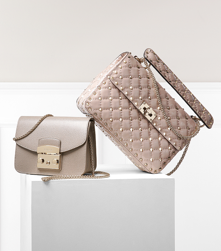 - one detachable shoulder strap made of antique gold-colored chain links (approx. 127 cm)